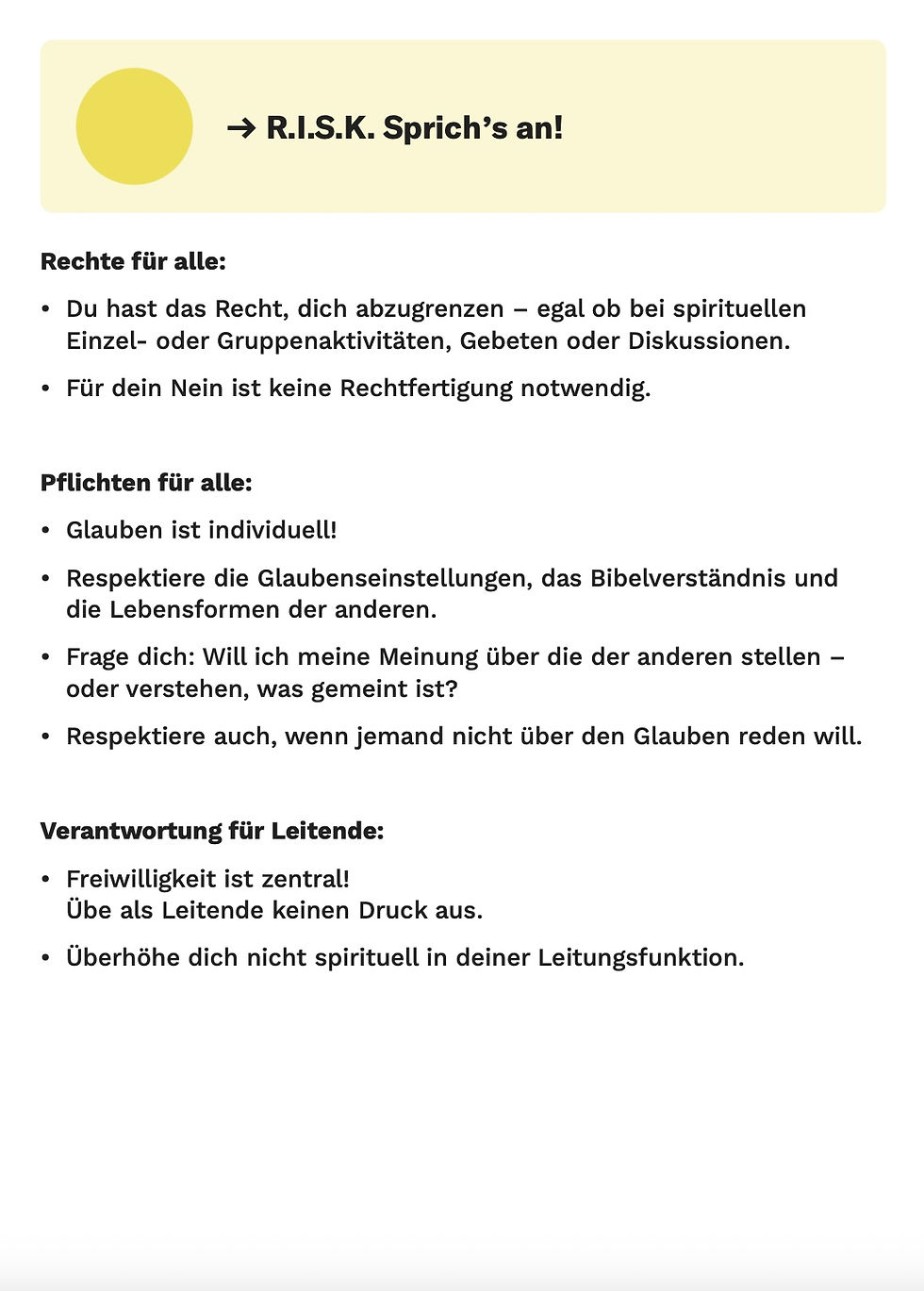 Als kirchliches Lager stellen wir uns klar gegen Machtmissbrauch und fördern Prävention von spirituellem und sexuellem Missbrauch.